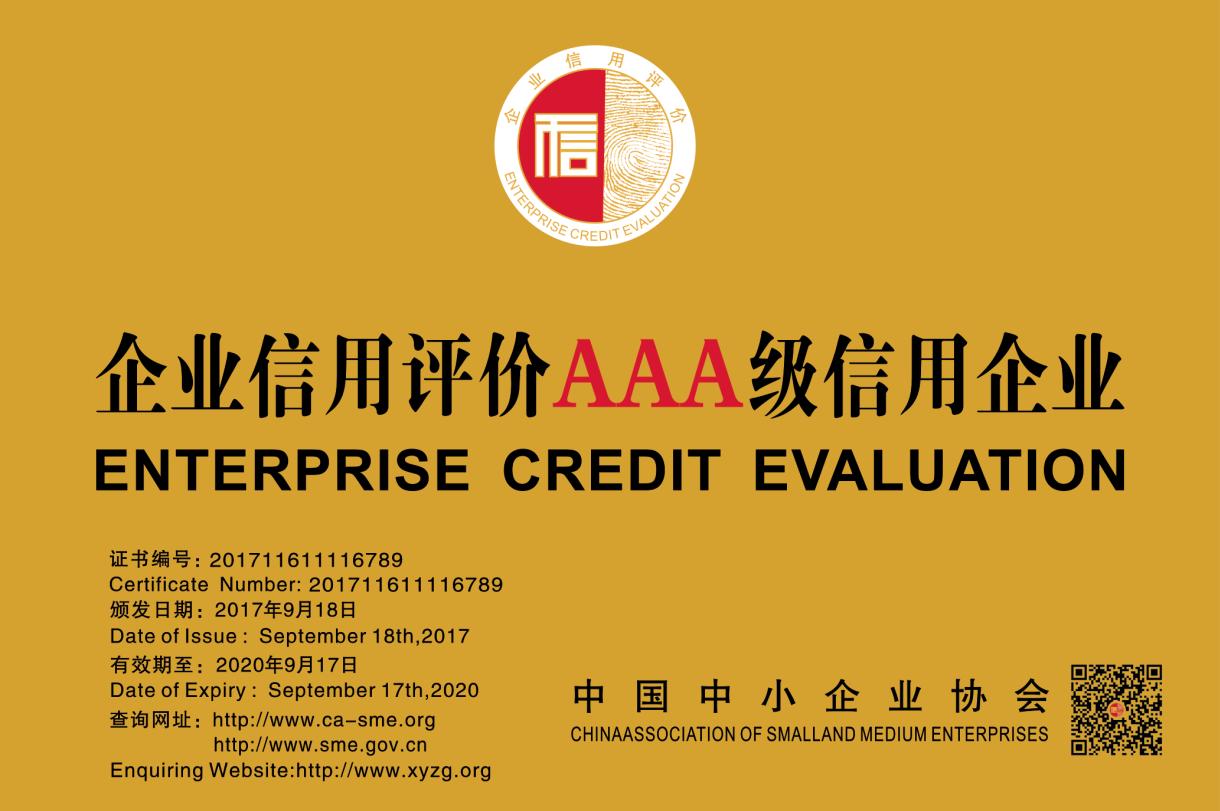 中国中小企业协会是全国中小企业、企业经营者自愿组成的全国性、综合性、非营利性的社会团体,接受国家发改委业务指导和民政部的监督管理,是中国最权威的第三方信用服务机构之一。此次对广东力拓评审最终决定授予信用等级最高的“企业信用评价AAA级信用企业”的荣誉称号。